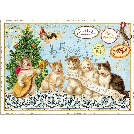 クリスマス ソング キャット フレンズ ドイツ 製 ポストカード ネコ ねこ ラメ クリスマスカード グリーティングカード