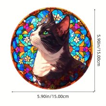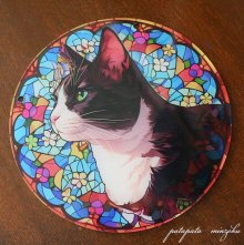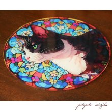 ハチワレ 猫 アクリルペンダント アクリルプレート ステンドグラス 風 ディスプレイ サインプレート 看板 ウォールディスプレイ ねこ ネコ 花