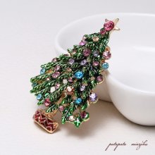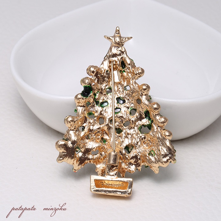 クリスマス ツリー ブローチ ラインストーン ピンバッジ パーティー ディスプレイ