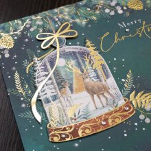 クリスマス 黄金のツリーと鹿 グリーティングカード イギリス 製 ポストカード クリスマスカード トナカイ