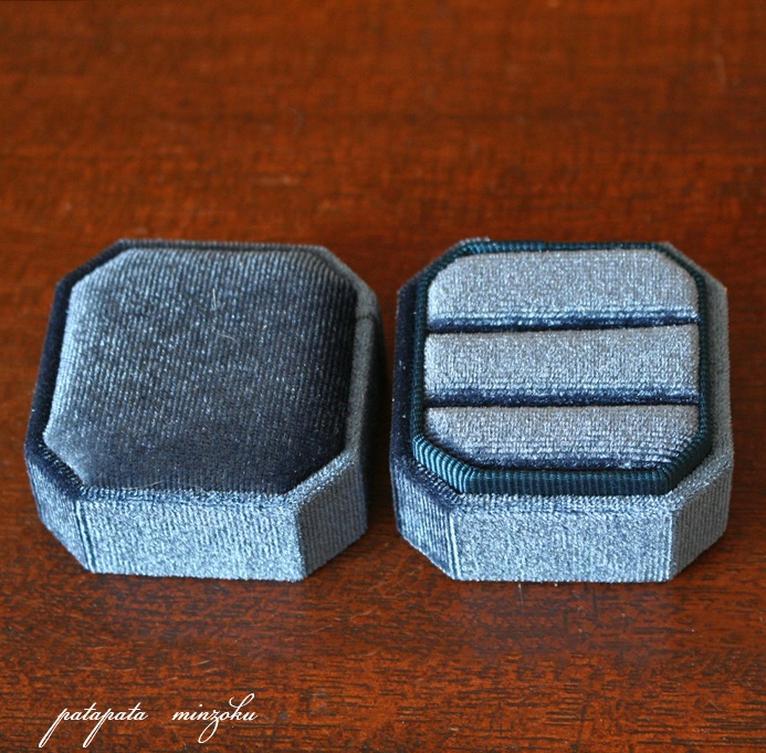 ベルベット ジュエリー ボックス ペアリング リングホルダー スターアニス ダークブルー 指輪ケース リング 指輪