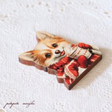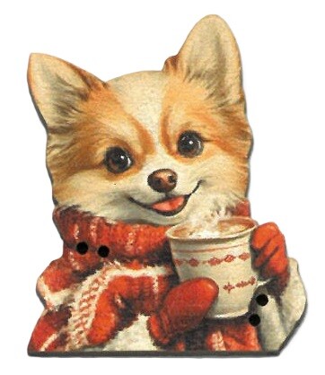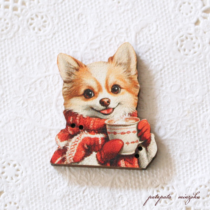クリームラテを持った犬 フランス 製 木製ボタン アトリエ ボヌール ドゥ ジュール 犬 ドック