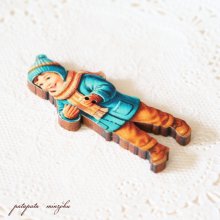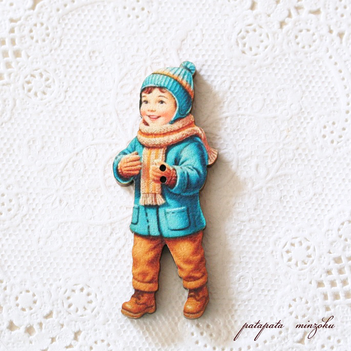 青いニット帽の男の子 フランス 製 木製ボタン アトリエ ボヌール ドゥ ジュール
