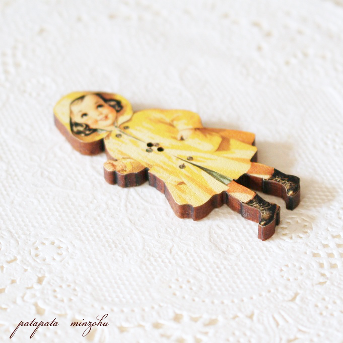 黄色のレインコートの女の子 フランス 製 木製ボタン アトリエ ボヌール ドゥ ジュール 女の子